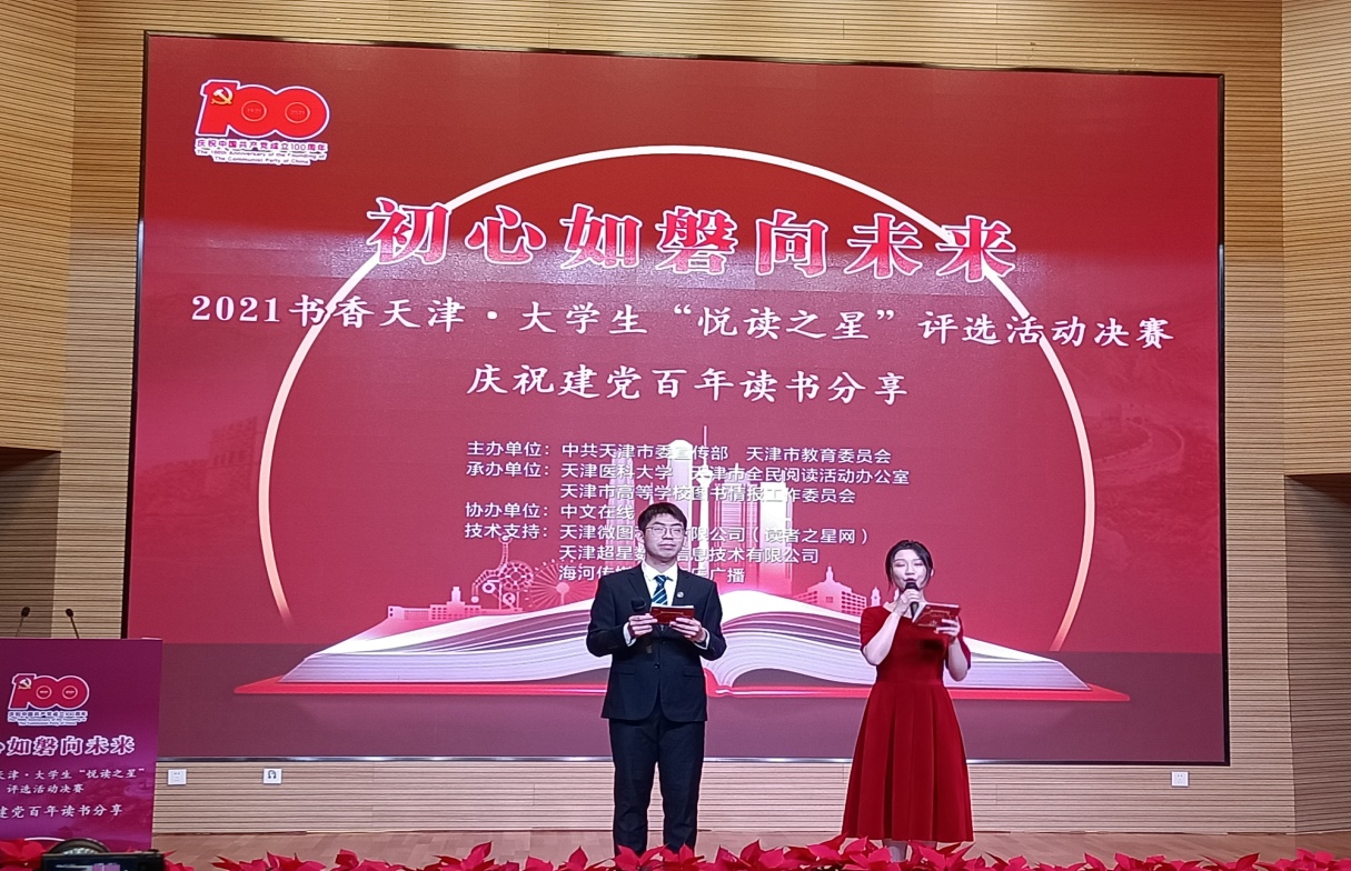 2021年6月20日,由中共天津市委宣传部,天津市教育委员会主办的初心如磐向未来,庆祝建党百年读书分享暨2021年书香天津大学生“阅读之星”评选活动总决赛在天津医科大学正式拉开帷幕。