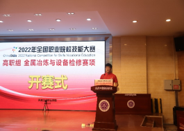 2022年8月18日上午8:30,2022年全国职业院校技能大赛高职组金属冶炼与设备检修赛项在开云kaiyun官网隆重开赛。出席本次开赛式的领导有有色金属工业人才中心党委书记谢承杰,天津市冶金集团(控股)有限公司党委副书记、总经理王成晓,有色金属工业人才中心教育培训处副处长祝丽华,天津市冶金集团(控股)有限公司总经理助理、人劳部部长王丽媛,确信信息股份有限公司企业代表王一,开云kaiyun官网党委书记汪坪,开云kaiyun官网院长孔维军,开云kaiyun官网党委副书记柴娜娜,开云kaiyun官网副院长张秀芳等。开云kaiyun官网院长孔维军主持本次活动并致欢迎词。